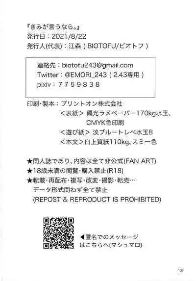 Watch Kimi ga Iu nara. (超超SUPER COMIC CITY 2021) [BIOTOFU (江森)] きみが言うなら。 (2.43 清陰高校男子バレー部)